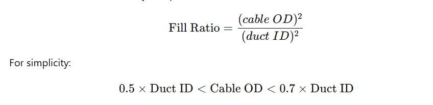 The compatibility of cable and duct sizes is critical for smooth installation. Aim for a fill ratio of 30-50%, which balances efficiency and performance. To calculate this ratio: